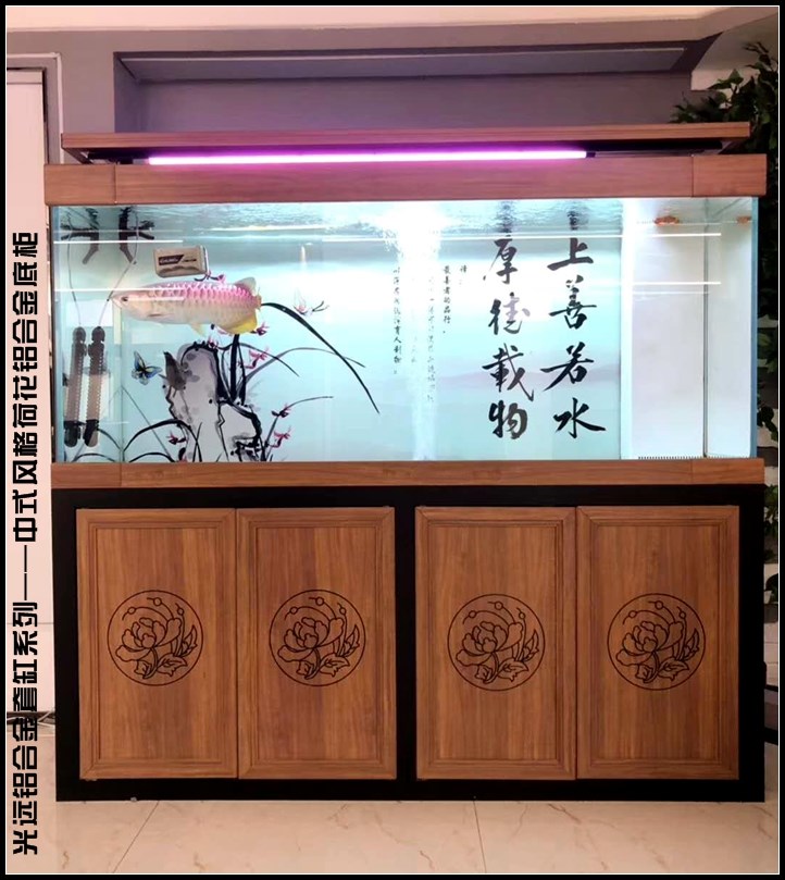 2020新款金晶超白玻璃龙鱼缸中式风格铝合金底过滤钢木结构。热门设计联盟服务商