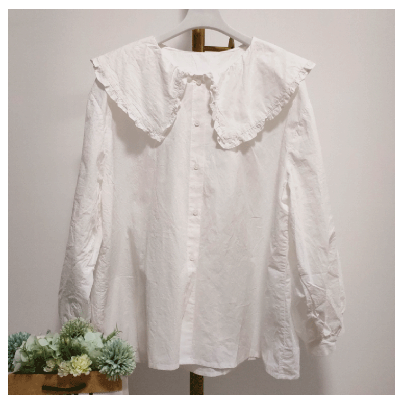 复古荷叶边大翻领麻铺娃娃款宽松纯棉衬衫春秋长袖设计师款原创热门设计联盟服务商