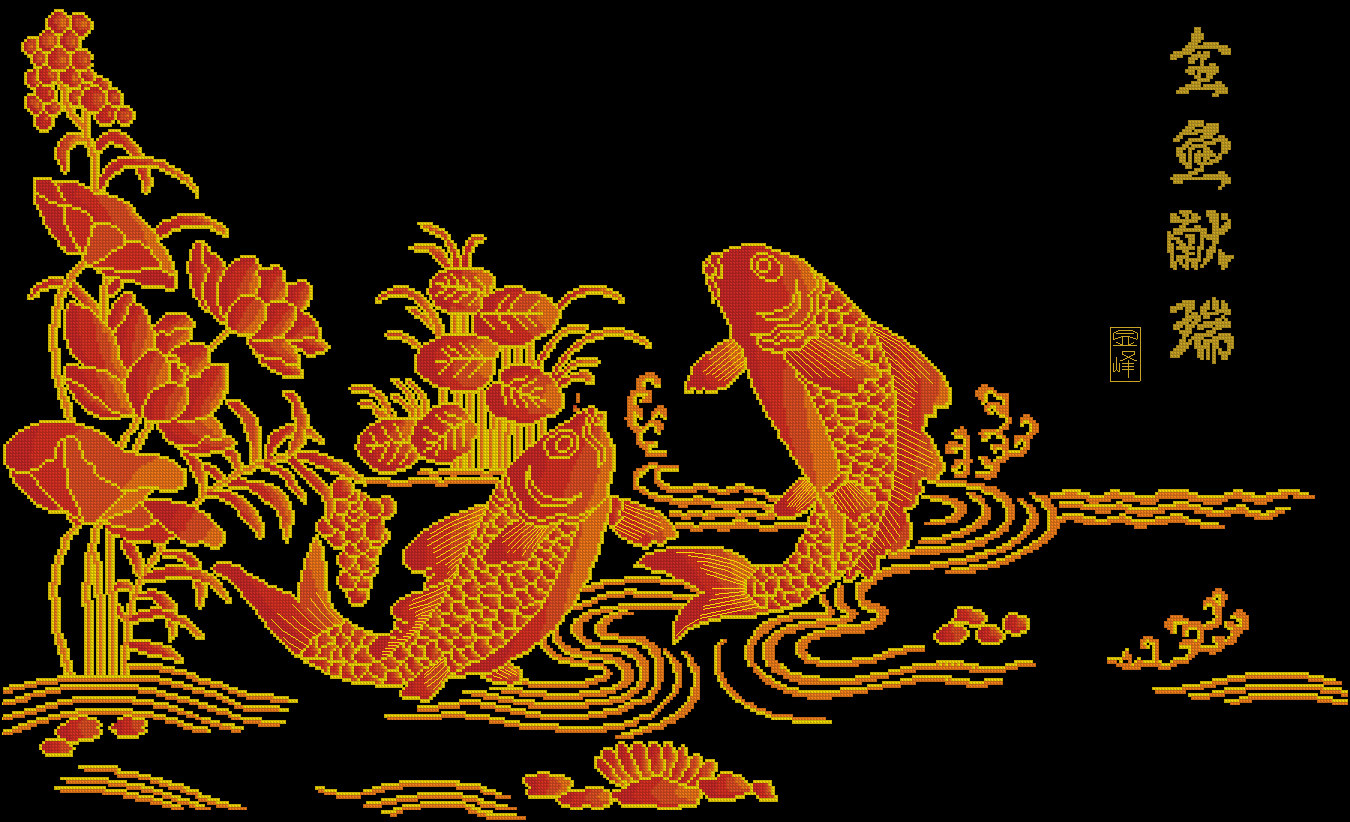十字绣图纸DW0901金鱼献瑞、重绘图纸热门设计联盟服务商